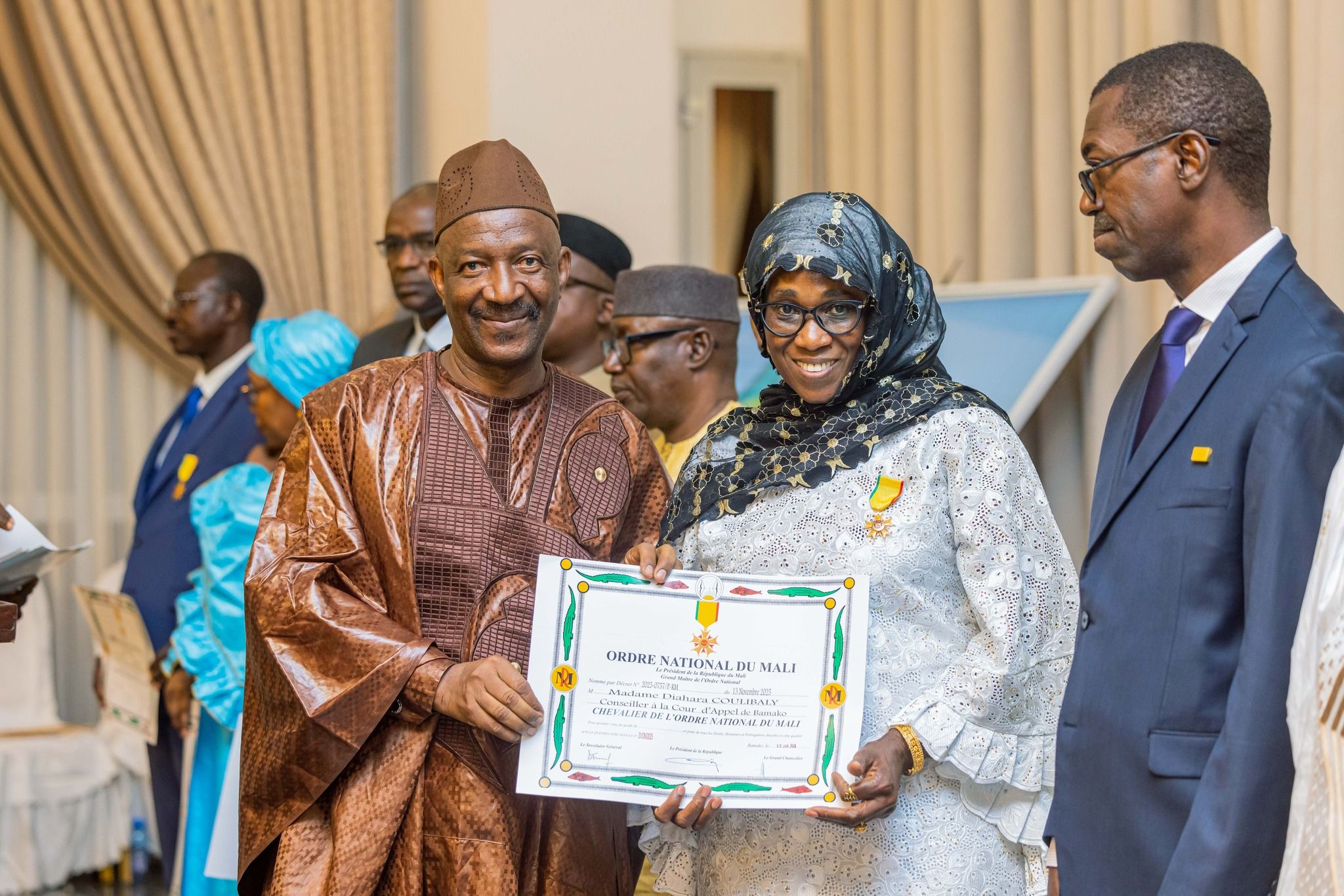 Le Ministre Secrétaire général de la Présidence de la République, Dr Alfousseyni DIAWARA, a présidé, ce lundi 9 février 2026, la cérémonie de remise de décorations aux récipiendaires élevés au grade de Chevalier de l’Ordre national et du Mérite national avec Effigie Lion Debout.