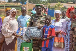 Dans le cadre de la 30ᵉ édition du Mois de la Solidarité et de la Lutte contre l’Exclusion, plusieurs centaines de veuves et d’orphelins de militaires viennent de recevoir une quantité importante de vivres et de fournitures scolaires. Les cérémonies de remise se sont déroulées à la place d’armes du génie militaire de Bamako et à Kati, le mardi 7 octobre 2025. La remise a été faite par M. Aguibou DEMBELE, Conseiller spécial du Président de la Transition, chargé des œuvres sociales. Étaient présents à cette cérémonie, le Directeur général du Service social des armées ainsi que les autorités administratives et communales du District de Bamako et du cercle de Kati. Dans les deux cérémonies, les bénéficiaires n’ont pas tari d’éloges en faveur du Chef de l’État pour ce geste de haute portée.
